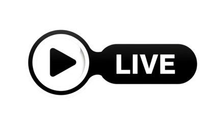 3D Live Streaming Button with Play Icon on transparent background