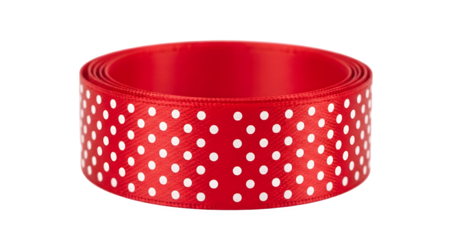 A charming vintage red ceramic teapot with white polka dots and a matching teacup and saucer presented isolated on transparent background