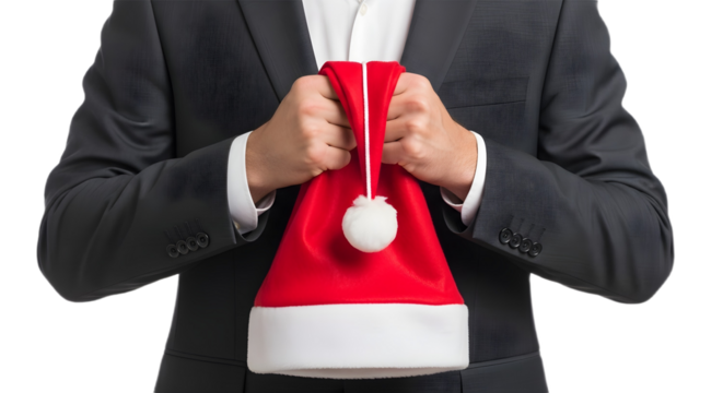 Six santa hats arranged in two rows against a transparent background for christmas holiday season theme