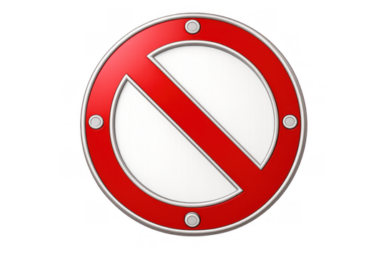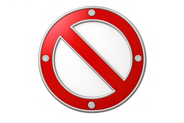 The general prohibition sign , also known as a no symbol, no sign, circle-backslash symbol, nay, interdictory circle or universal no, is a red circle with a red diagonal line through it