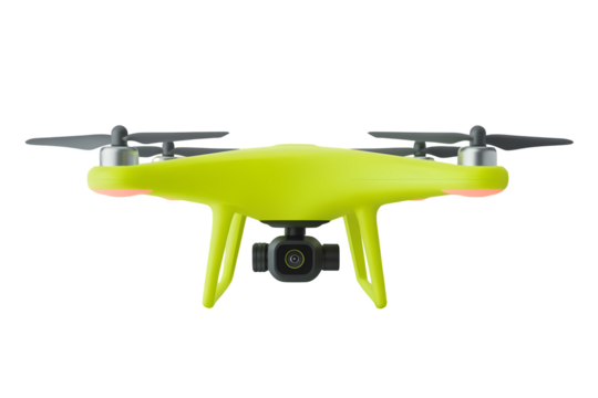A white drone with a camera isolated on transparent background, showcasing its design and technology for aerial photography and videography