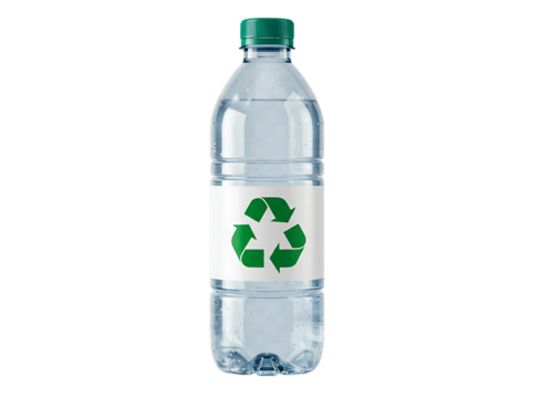 Set recycling symbol made of blue PET plastic bottles isolated on transparent or white background