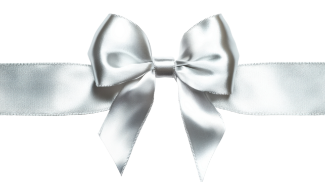 white ribbon bow isolated on transparent background cutout