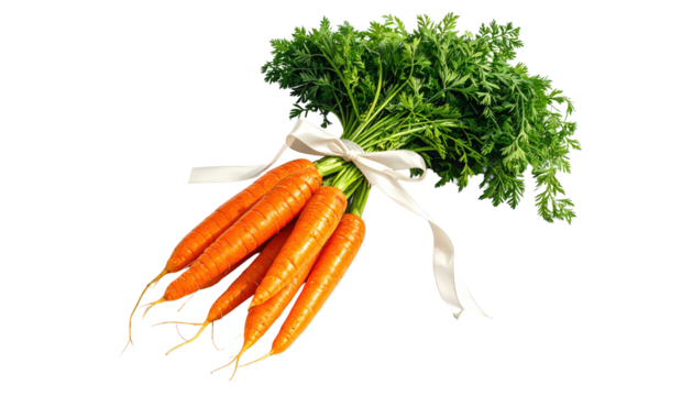 Fresh Carrots Bunch Tied With White Ribbon Isolated On Transparent Background Healthy Food Organic Vegetables Vegan Diet Farm To Table