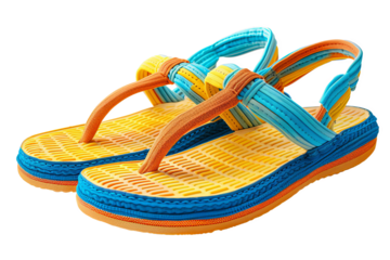 A pair of jute slippers stripes isolated on a transparent background