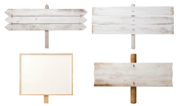 Authentic white wooden sign with a transparent background, ideal for personalizing with text or designs