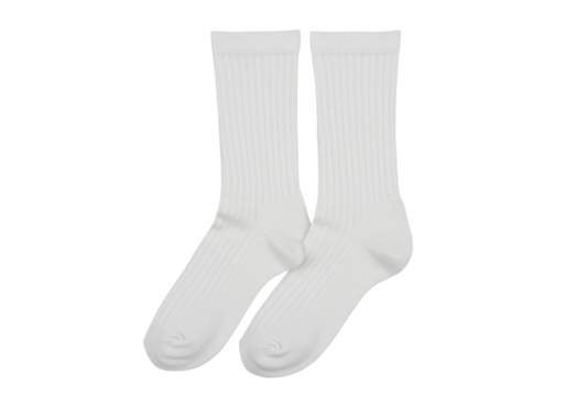 Classic White Socks: A pair of crisp white socks lay flat, showcasing their clean, simple design, perfect for a casual or sporty look.