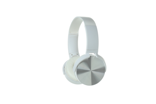 PNG, white, on-ear headphones isolated on a white background.