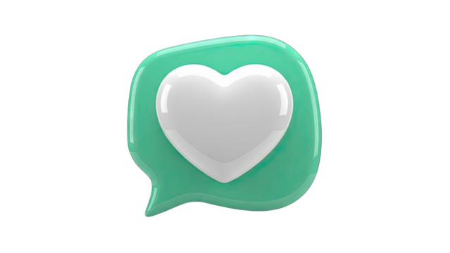 3D Green Speech Bubble with White Heart Icon on transparent background