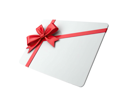 Bright red gift box with white ribbon, against a dark backdrop. Simple and celebratory