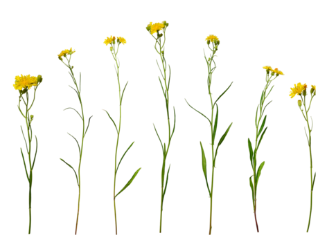 Botanical Collection. Set of yellow wildflowers Crepis tectorum isolated on white background. Elements for creating designs, cards, patterns, floral arrangements, frames, wedding cards and invitations