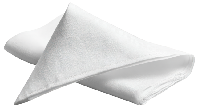 Folded White Linen Napkin with Textured Surface and Stitched Edges.