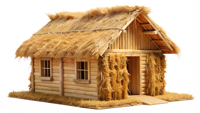 A light beige straw hat with a woven texture and dark aviator sunglasses resting on the brim, set against a transparent background. AI generated.