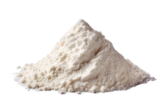 Pile of fine white powder on black background studio shot ingredient food, Isolated On White Background, Png Transparent