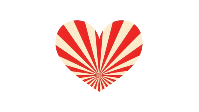 Retro heart shape graphic with red and white vintage sunburst design element isolated PNG with Transparent Background