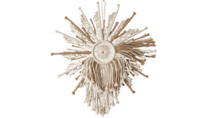 Ornate sunburst macrame wall hanging isolated on transparent background