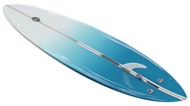 White surfboard with fins on transparent background