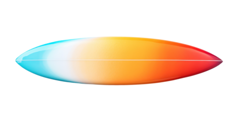 Isolated surfboard with red outline and yellow orange and white stripes design