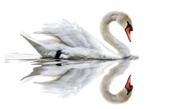 Elegant white swan isolated on a transparent background