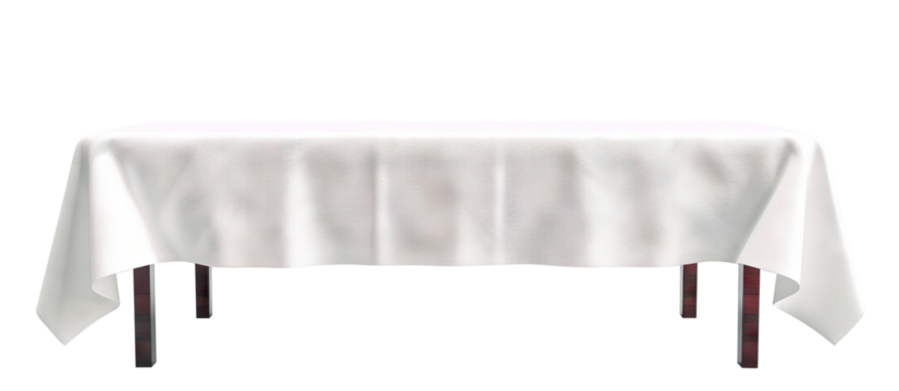 White and wavy cotton tablecloth covers the table isolated on transparent background. PNG