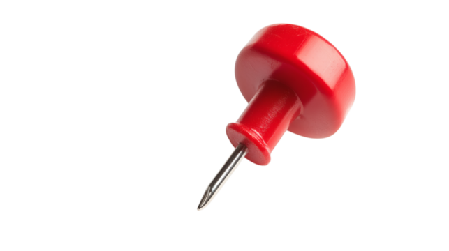 Red pin push pin isolated on transparent or white background, png