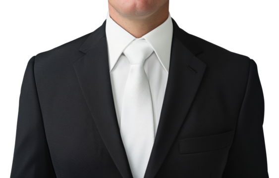 A man in a suit and tie is wearing a white tie, cut out - stock png.