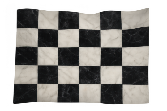 Black and white marble checkerboard pattern with textured squares on a transparent background
