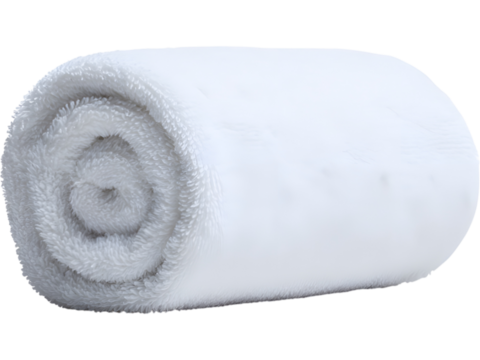 Soft fluffy white towel roll perfect for spa bath or hotel Luxurious texture clean bright white isolated on transparent background