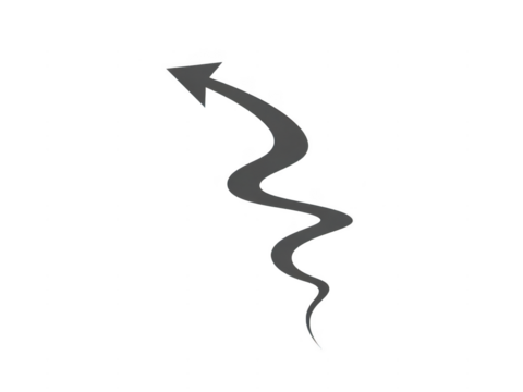 Curved arrow pointing upwards isolated on transparent background. Wavy arrow pointing upwards
