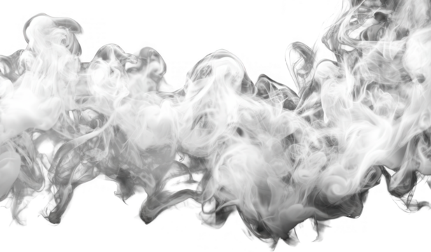 Abstract swirling white smoke plumes gracefully flow on a dark black background creating elegant dynamic ethereal vapor
