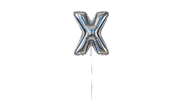 Silver letter x helium balloon floating in air on white background for party decoration