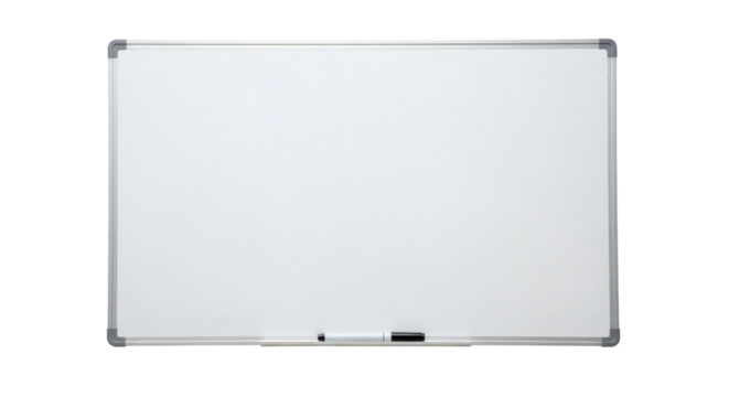 Blank magnetic whiteboard with metal frame for office or school isolated on a transparent background