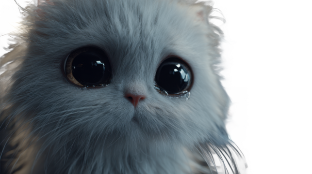 Blue fluffy kitten closeup eyes white background isolated on transparent background