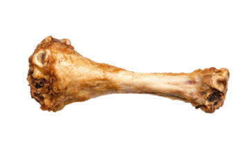 Single chicken bone on black background highlighting texture and detail, cut out