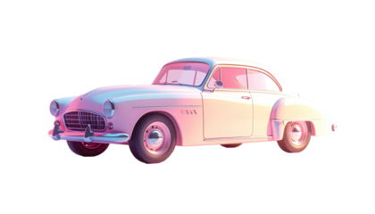 Pastel-pink vintage coupe, two-door, smooth curves, chrome details, whitewall tires,  soft lighting