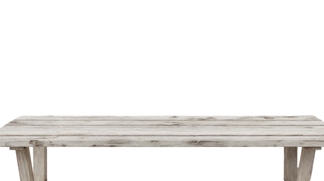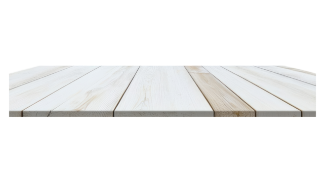 Rustic Whitewashed Wooden Tabletop on Transparent Background