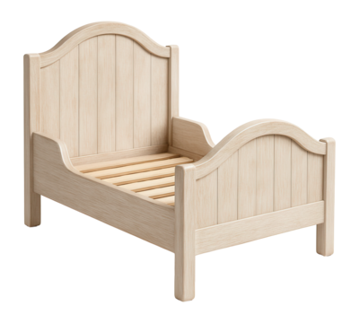 Cottage-style bed with a whitewashed finish for a cozy, rustic child's room.