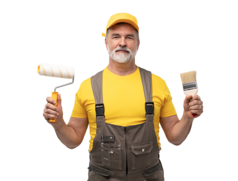 mature friendly painter. Isolated on transparent