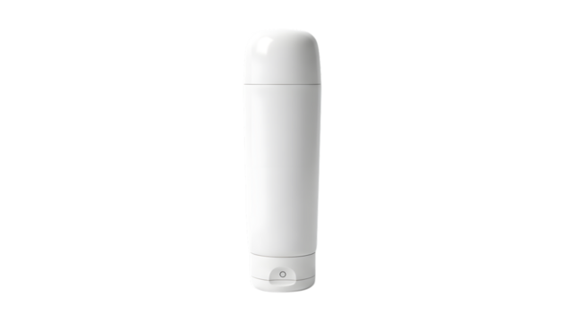 A white water bottle with a silver lid sitting Isolated on White and Transparent Background PNG Image.