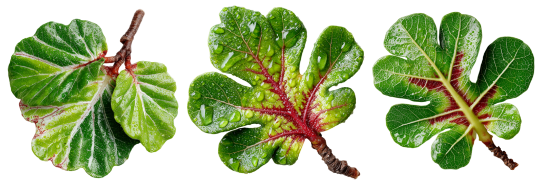 fresh green leaves with red veins isolated on white background, natural botany texture concept.
