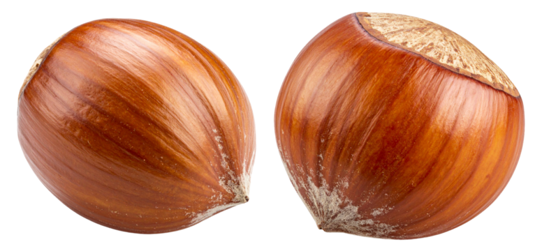 group of closeup of a whole hazelnut isolated on white background