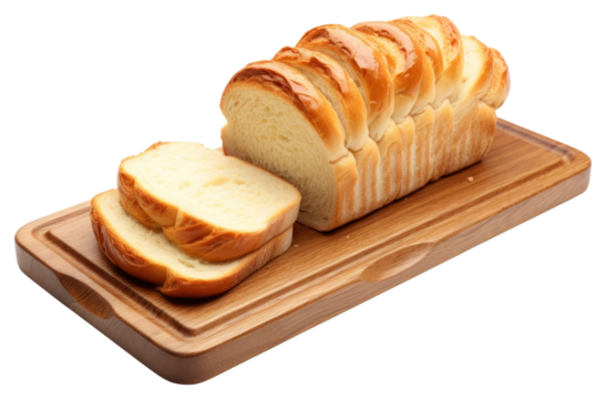 Set of loaf of wheat bread showing its golden crust and soft interior, isolated on white transparent background.