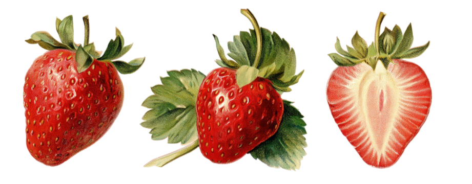 A juicy array of strawberries halved and whole pop against a stark black backdrop