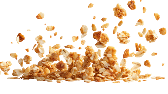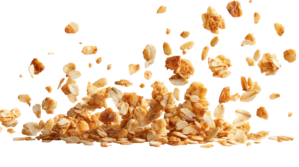 Oat Granola Falling Crunchy Muesli Isolated on Transparent Background