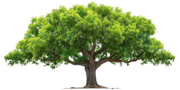 Green realistic huge tall wide tree cut out, isolated, transparent background - PNG.