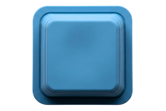 Blue square button with rounded corners and stepped edges on a transparent background