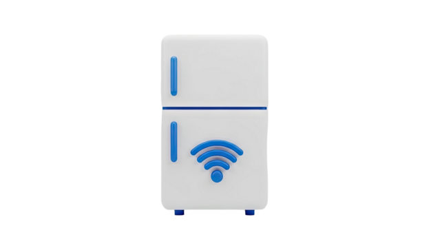 3D Smart Fridge Icon with WiFi Symbol 3D Rendering