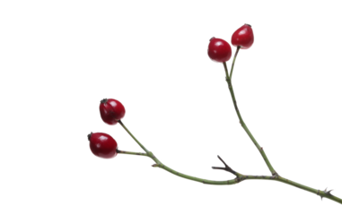 Dog rose hips on twig isolated on white