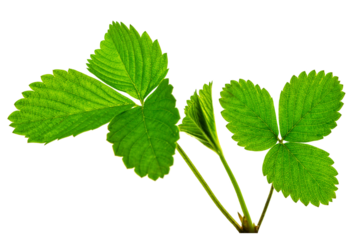 single leaf of wild, woodland, Alpine, strawberry, or European strawberry, or fraisier des bois (Fragaria vesca) in detail