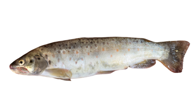 Trout Fish (Oncorhynchus mykiss) Isolated on White Background with Copy Text Space. Freshwater Species Element for Wildlife Education, Fishing Themes, and Nature-Inspired Designs. PNG File